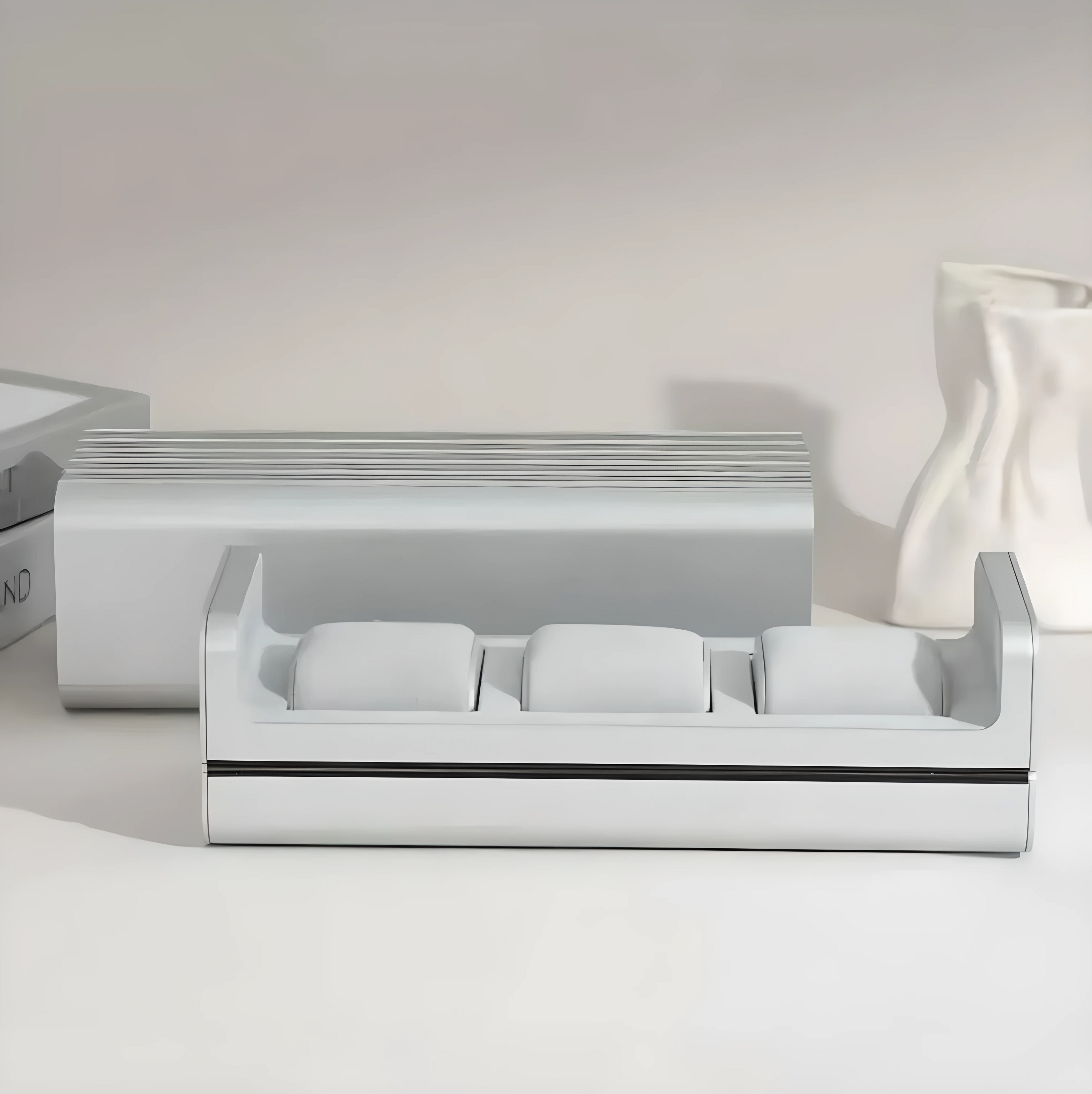 A refined aluminum watch case designed to protect and showcase your timepieces. Minimal, durable, and timeless.